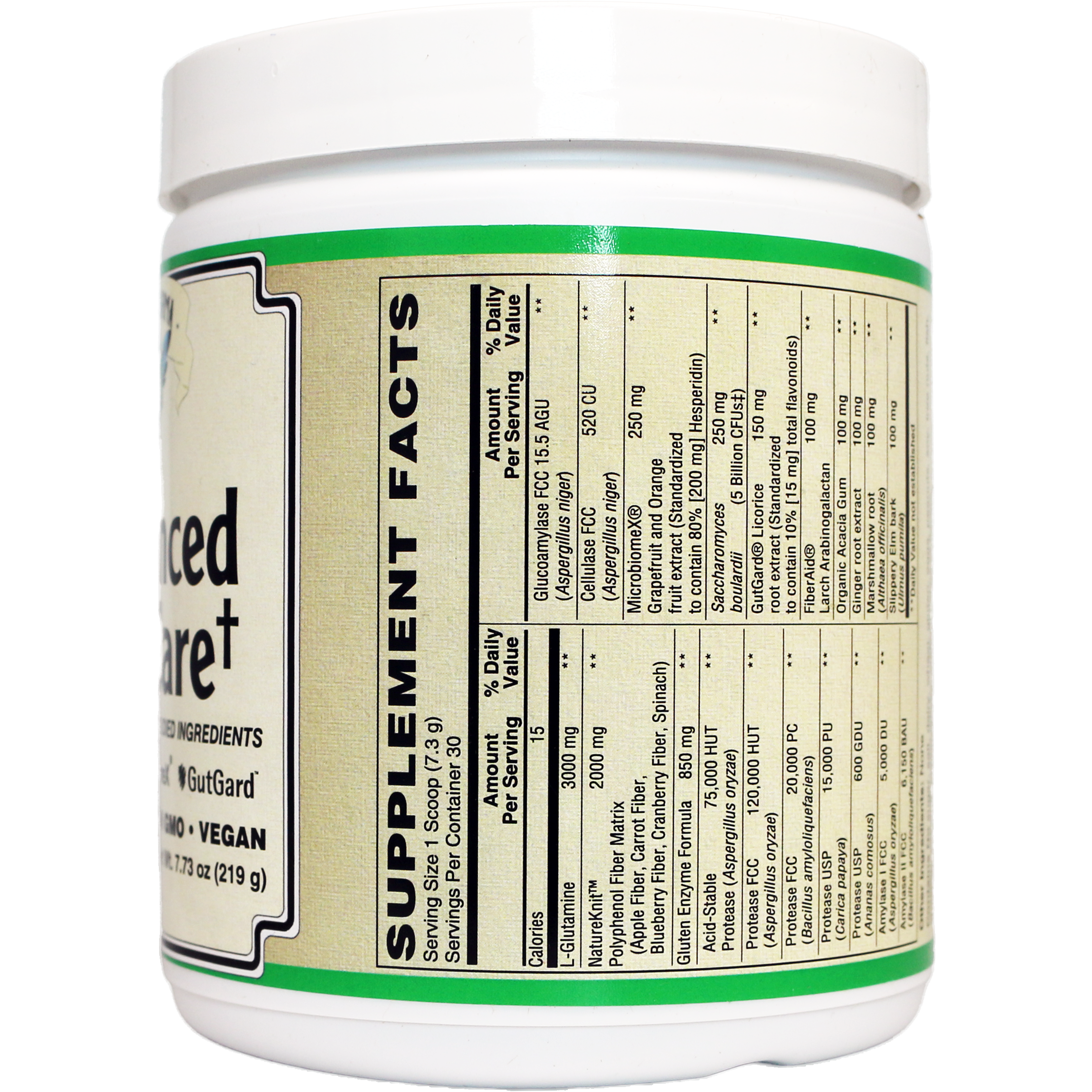This synergistic blend is enhanced by MicrobiomeX®, a citrus extract that beneficially shifts the gut microbiome to improve barrier function and gut-based immunity. GutGard®, a specialized licorice extract, offers significant relief from daily digestive issues, while Lynside® PRO SCB provides a robust, clinically validated strain of Saccharomyces boulardii to maintain flora balance. With a comprehensive Gluten Enzyme Formula, soothing botanicals like Marshmallow and Slippery Elm, and dual prebiotics FiberAid® and Organic Acacia Gum, Advanced Gut Care† is the complete, multi-faceted solution for maintaining a healthy, sealed, and serene gut.