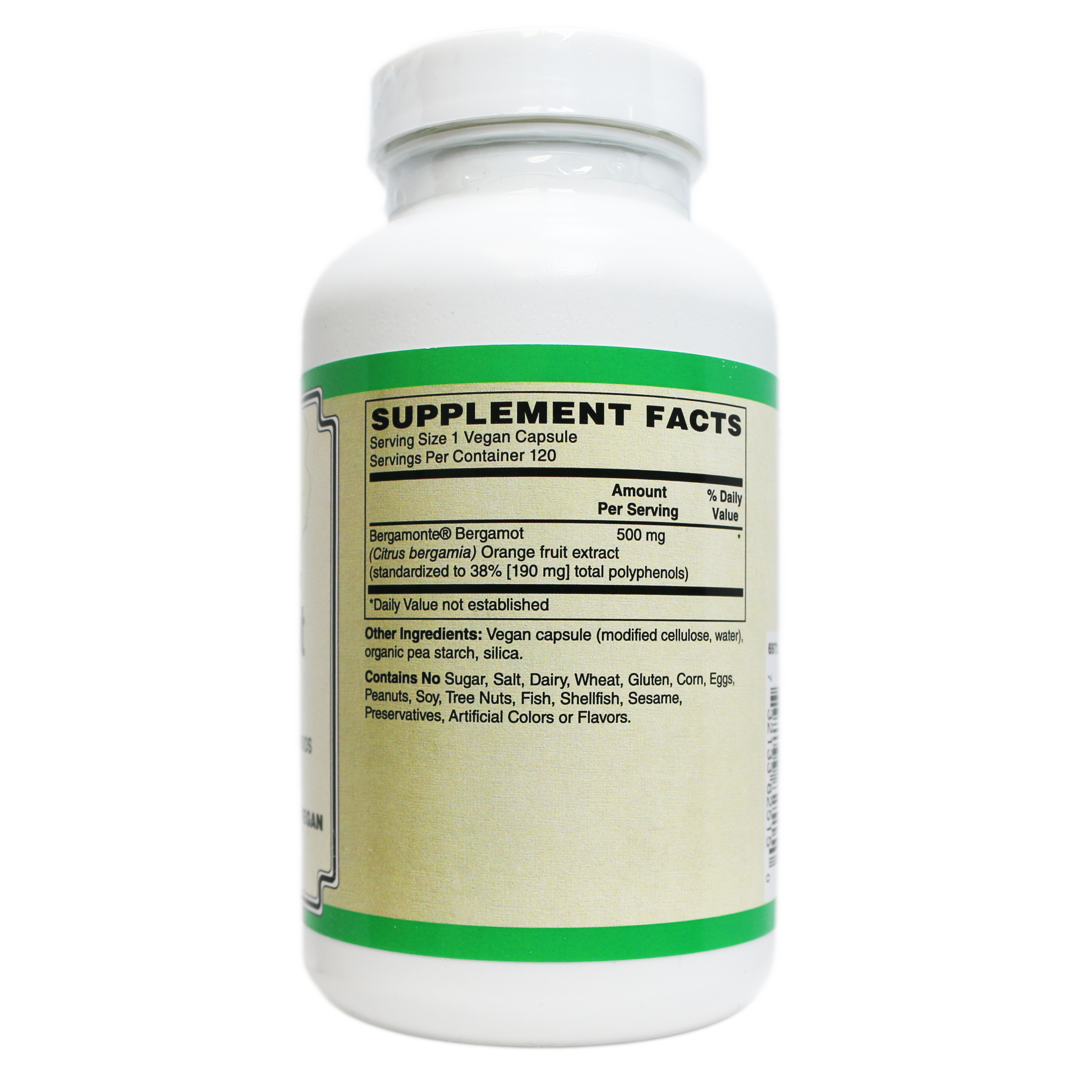 Bergamonte® Bergamot (Citrus bergamia) Orange fruit extract (standardized to 38% [190 mg] total polyphenols) — 500 mg