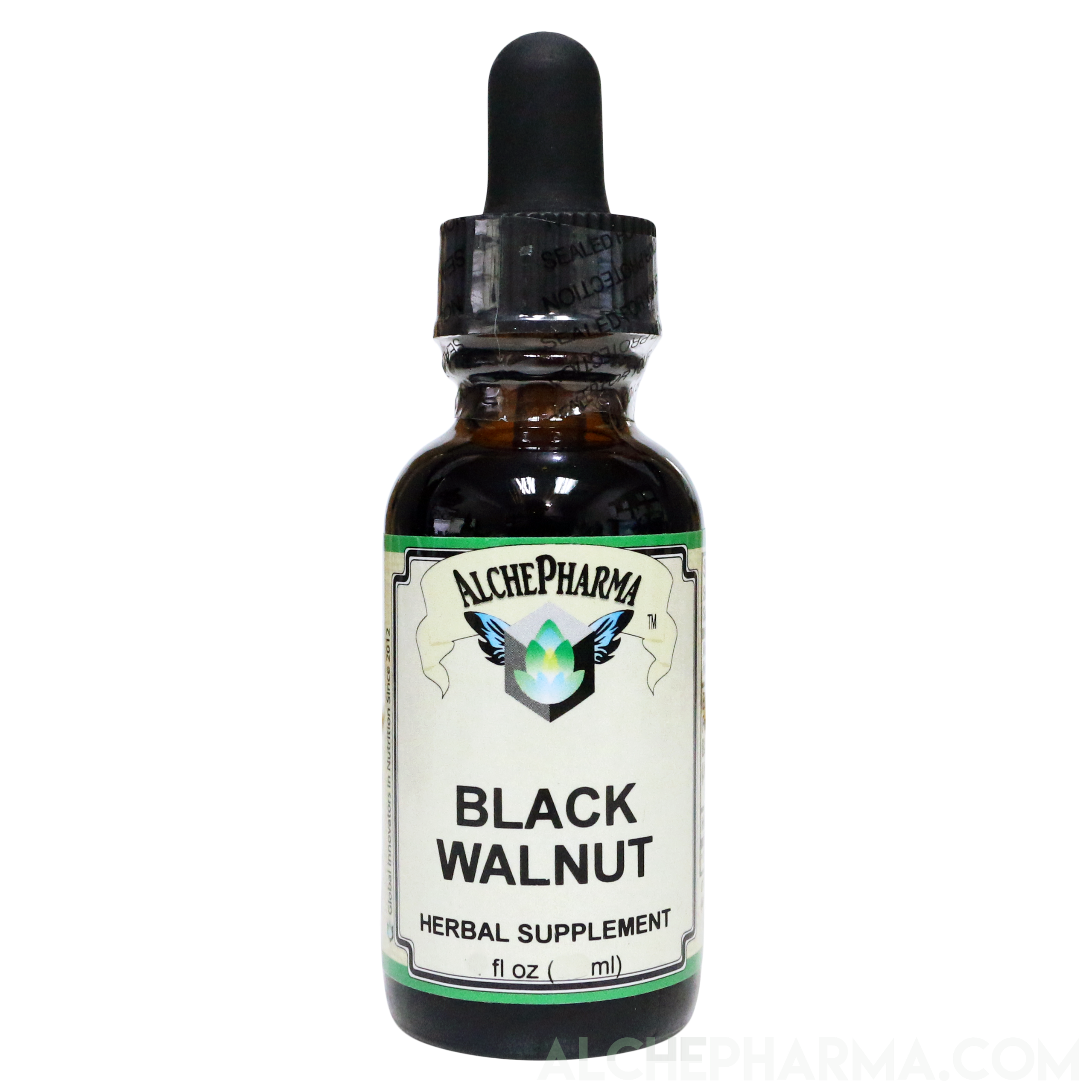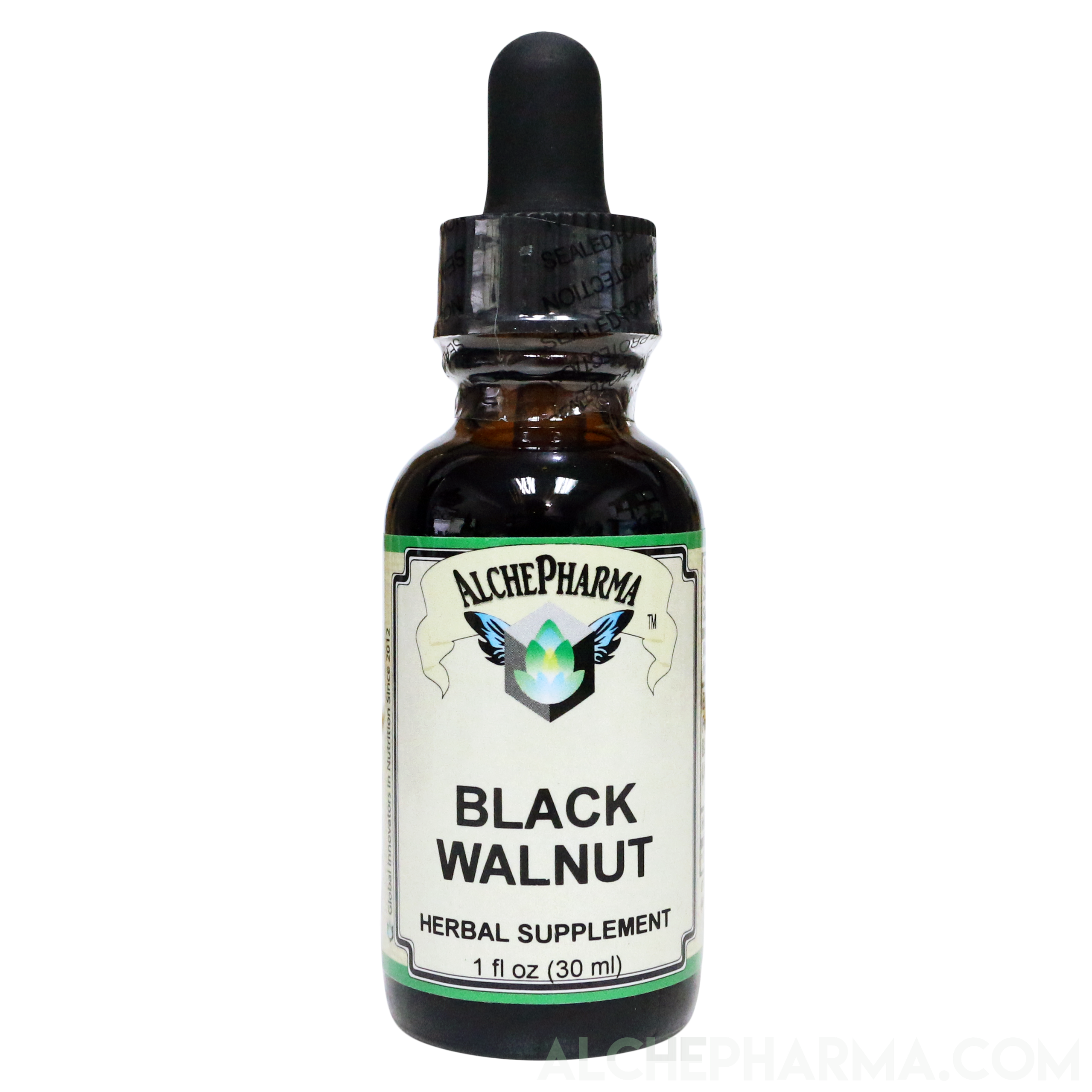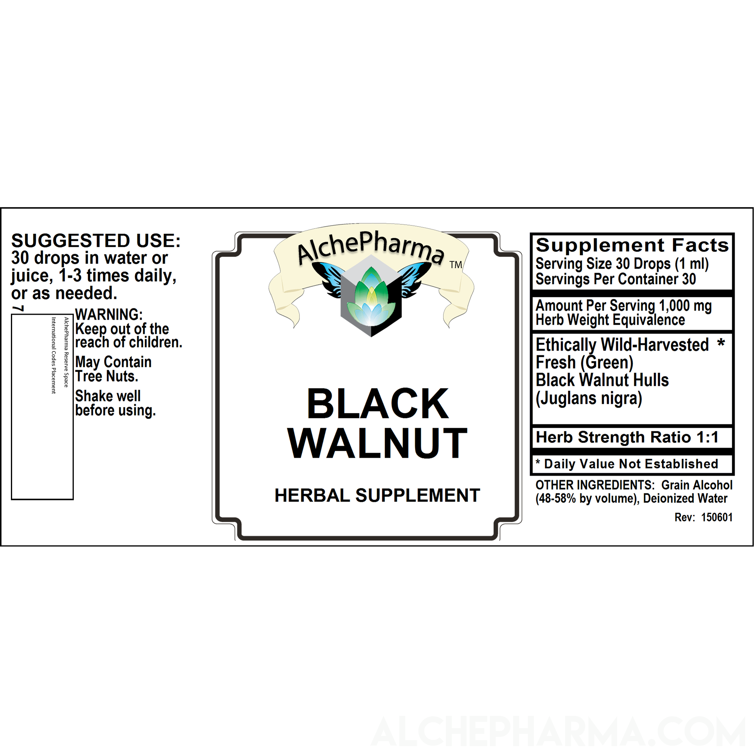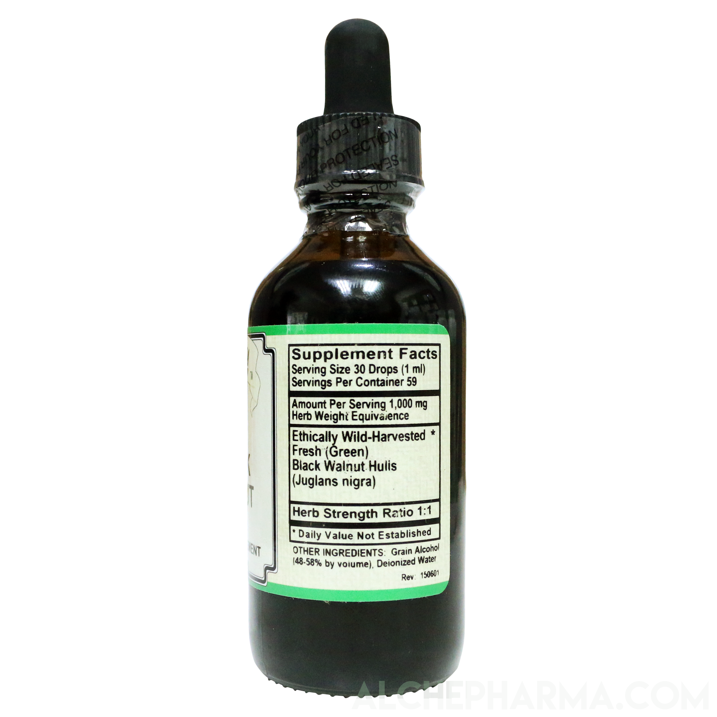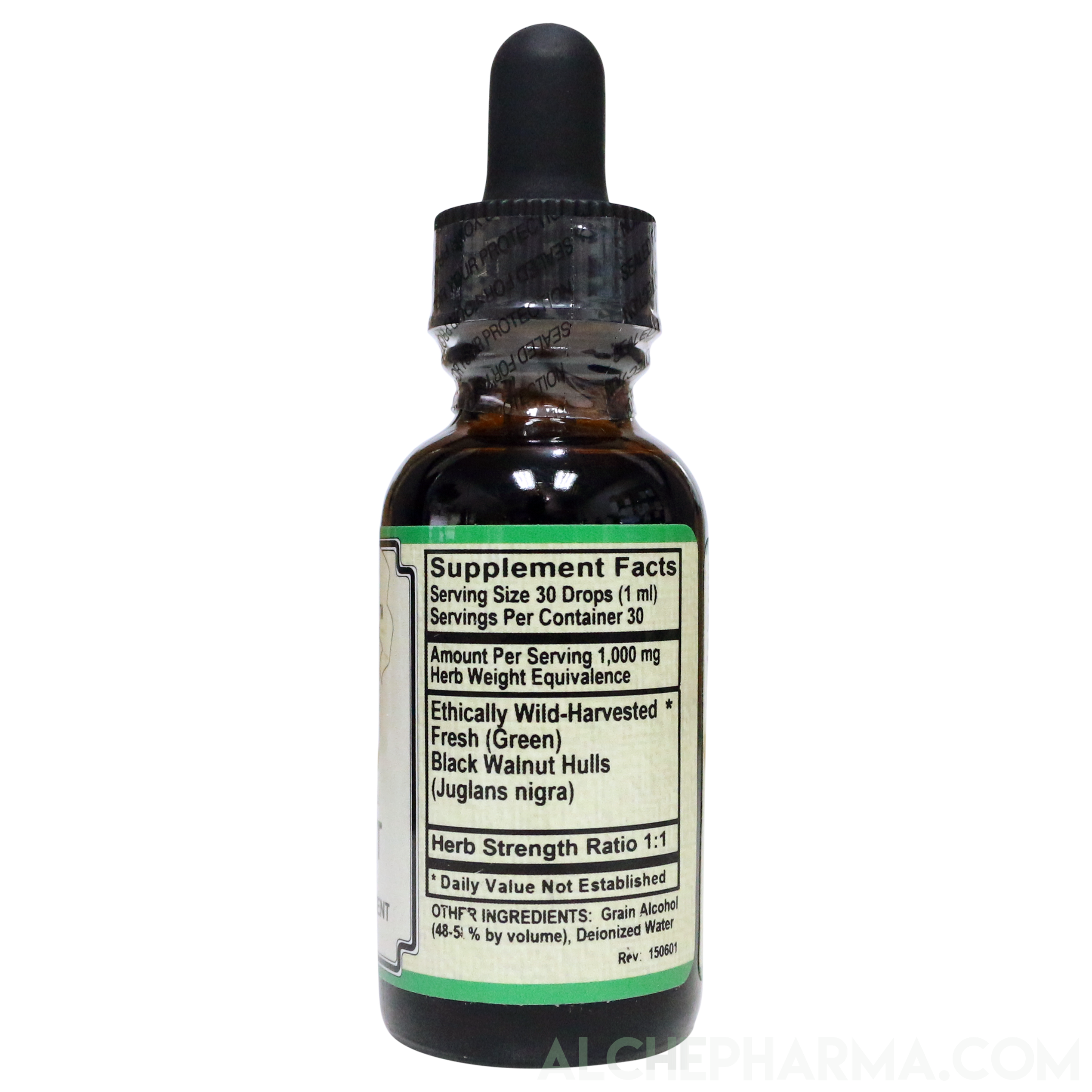 AlchePharma’s premium Black Walnut Tincture ( Juglans nigra ) is Ethically Harvested in the wild, in order to help maintain all of its natural phytochemical properties. This fresh Black Walnut Tincture is a 1:1 Herb Strength Ratio with a Herb weight Equivalence of 1000 mg per serving.