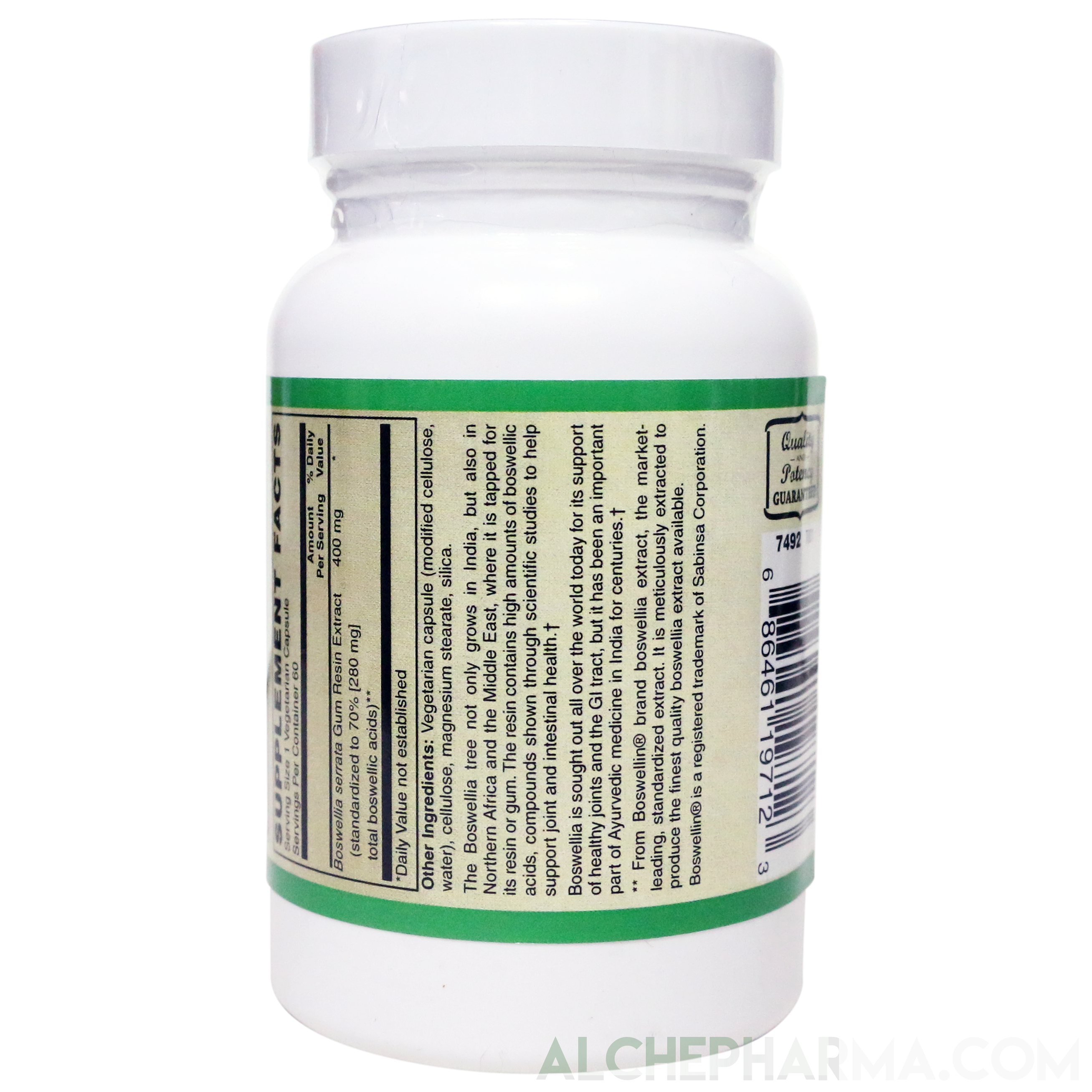 • Trademark ingredient Boswellin® clinically studied extract from Sabinsa, a world leader in Ayurvedic herbal extracts