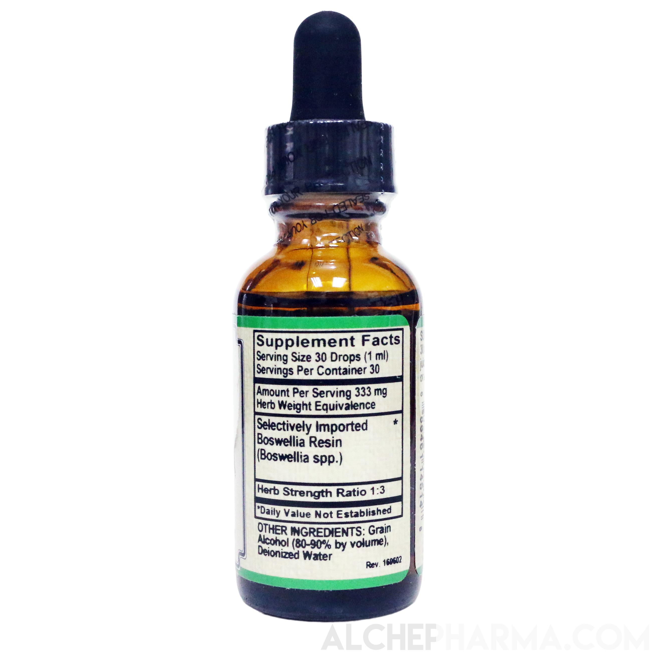 AlchePharma's Boswellia Tincture liquid tincture utilizes Boswellia Resin in an herb strength ratio of 1:3. This yields an Herb Weight Equivalence of 333 mg. per 1 ml.