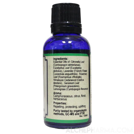 AlchePharma's Herbalist Bug Shield blend of essential oils designed for topical use utilizes a traditional blend of oils that have historically been used as natural bug repellants. This blend has had much success with landscapers, firefighters, hikers, or anyone else that enjoys the outdoors without using harsh chemical repellants.