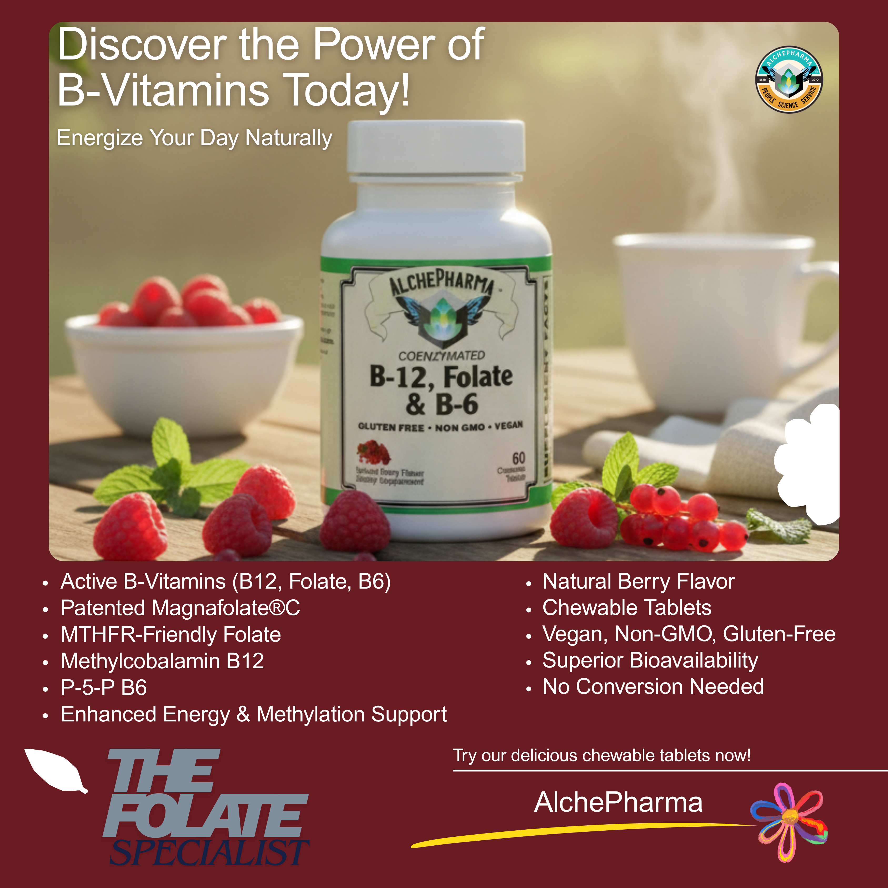 Elevate your daily wellness with AlchePharma's Coenzymated B-12, Folate & B-6, a premium, high-potency formula designed for superior bioavailability. This isn't your standard B-vitamin complex. We've formulated this product exclusively with "coenzymated" or "active" forms of these three critical nutrients.