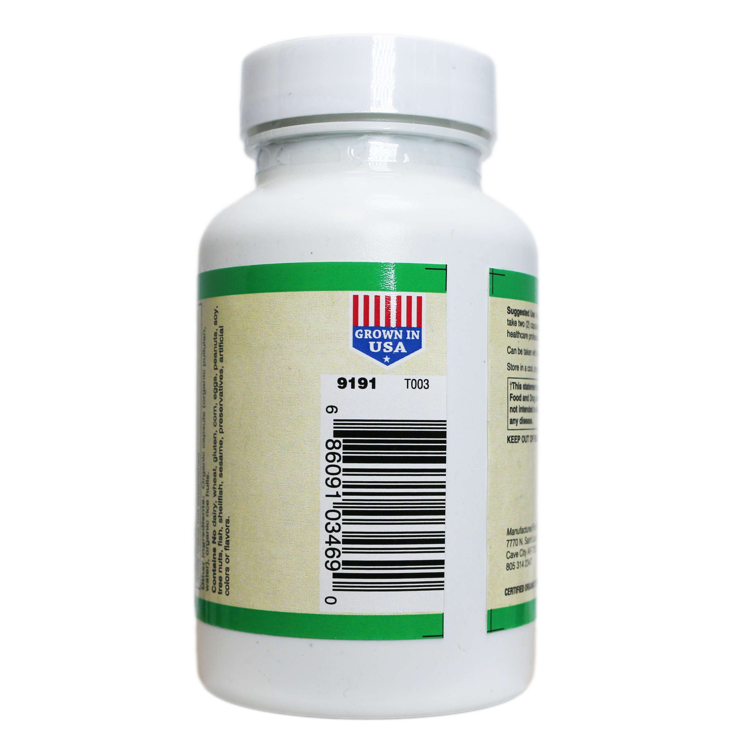 Other Ingredients: Organic capsule (organic pullulan, water), organic rice hulls.