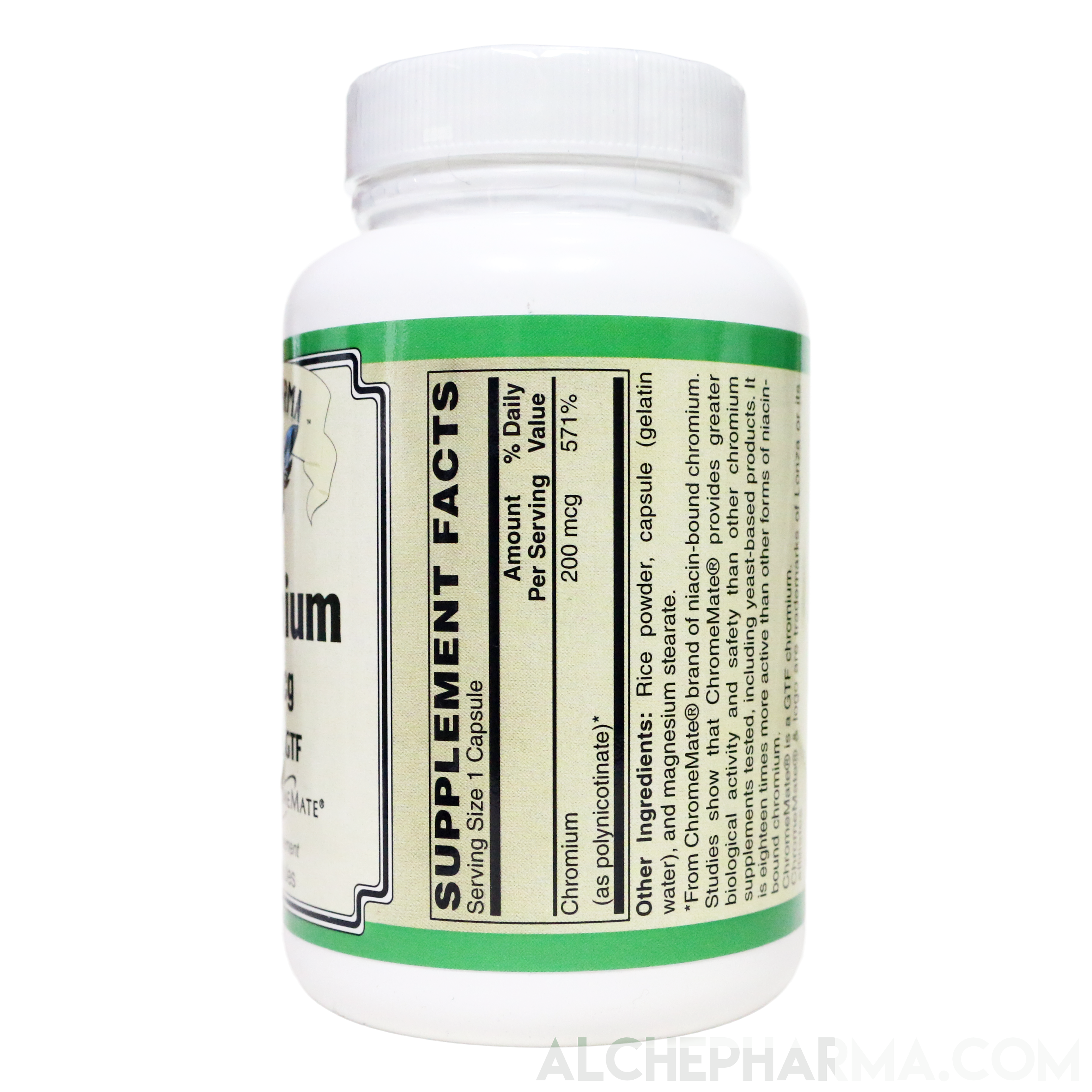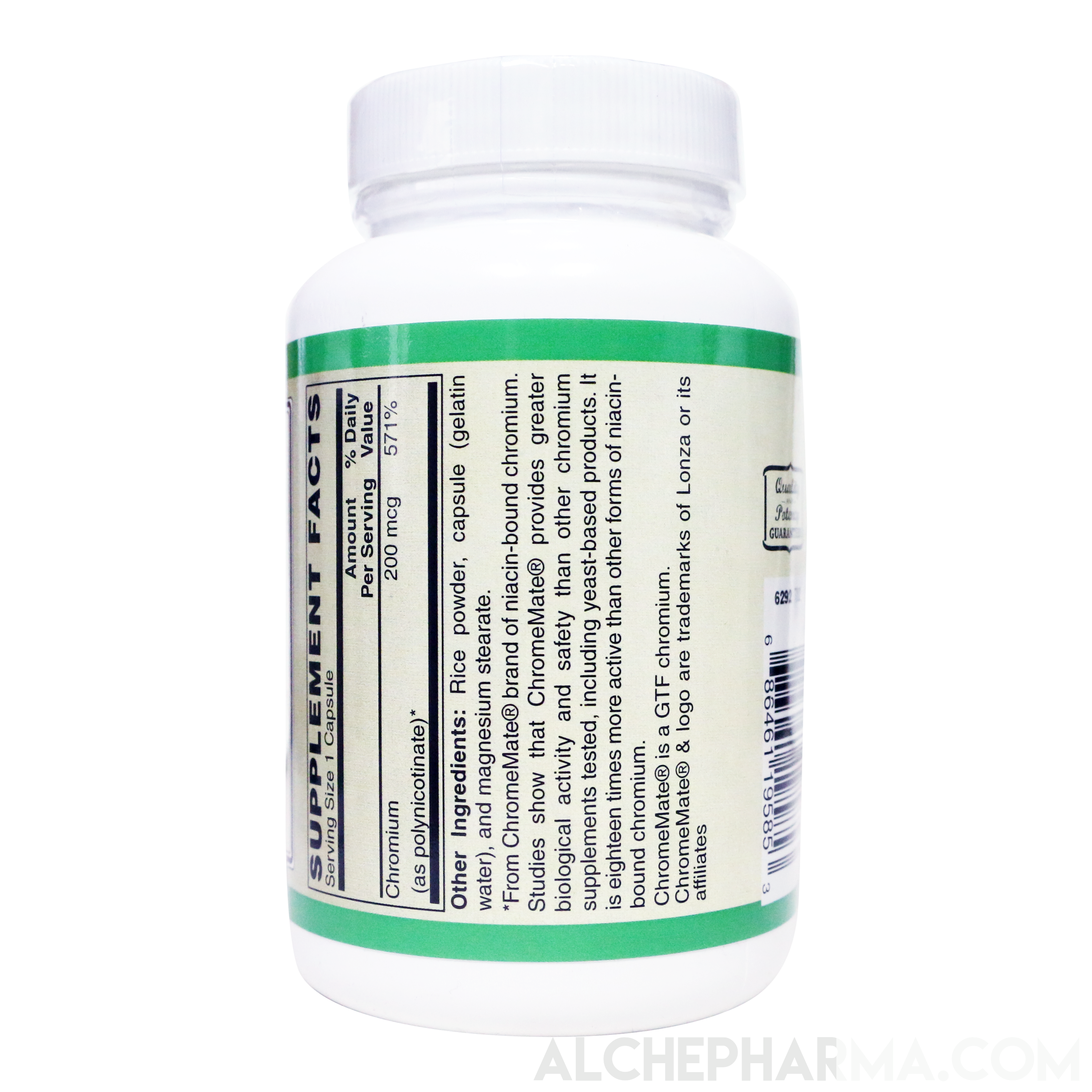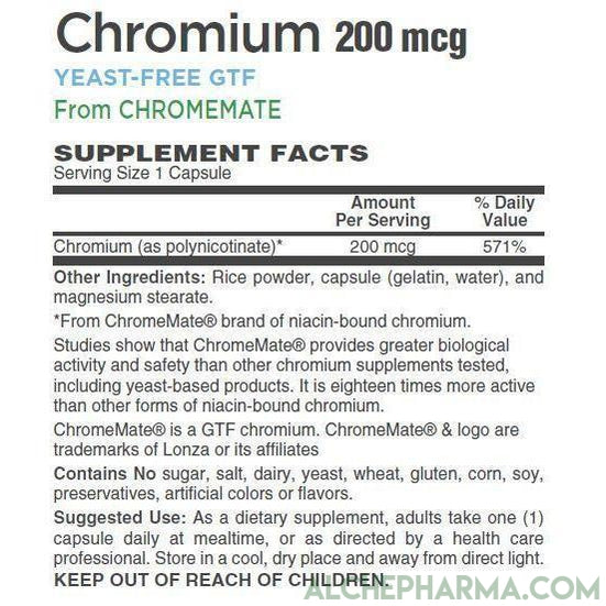 - Provides 200 mcg of chromium from niacin bound ChromeMate® per capsule.