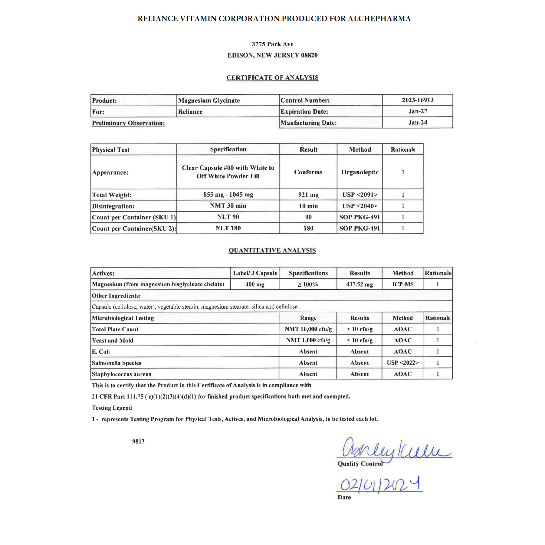 AlchePharma Magnesium Glycinate: Essential Mineral for Optimal Health