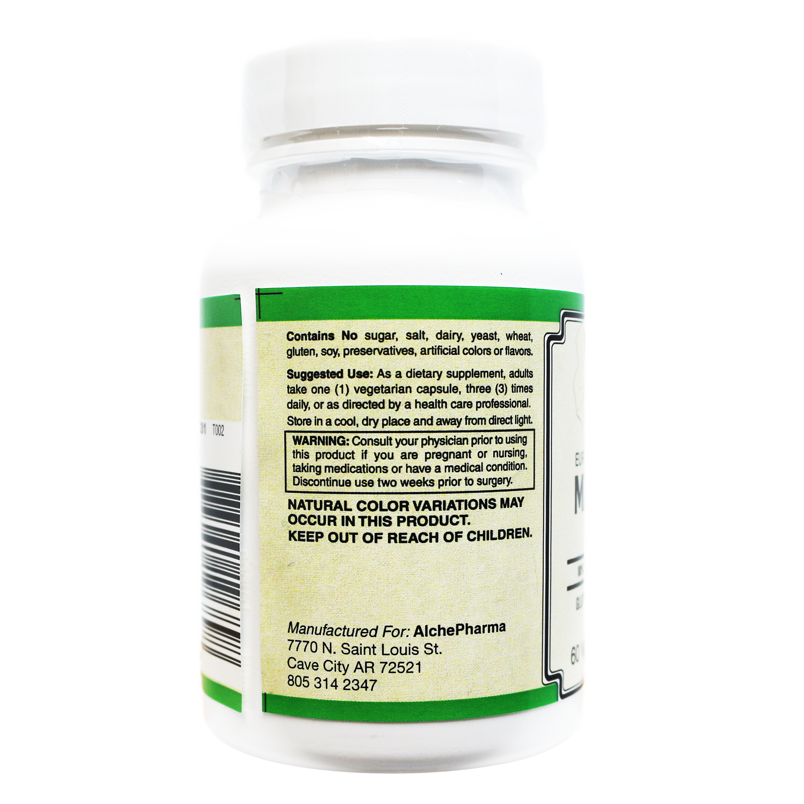 Other Ingredients: Vegetarian Capsule (Modified Cellulose, Water), Rice Powder, Magnesium Stearate, Silica.
