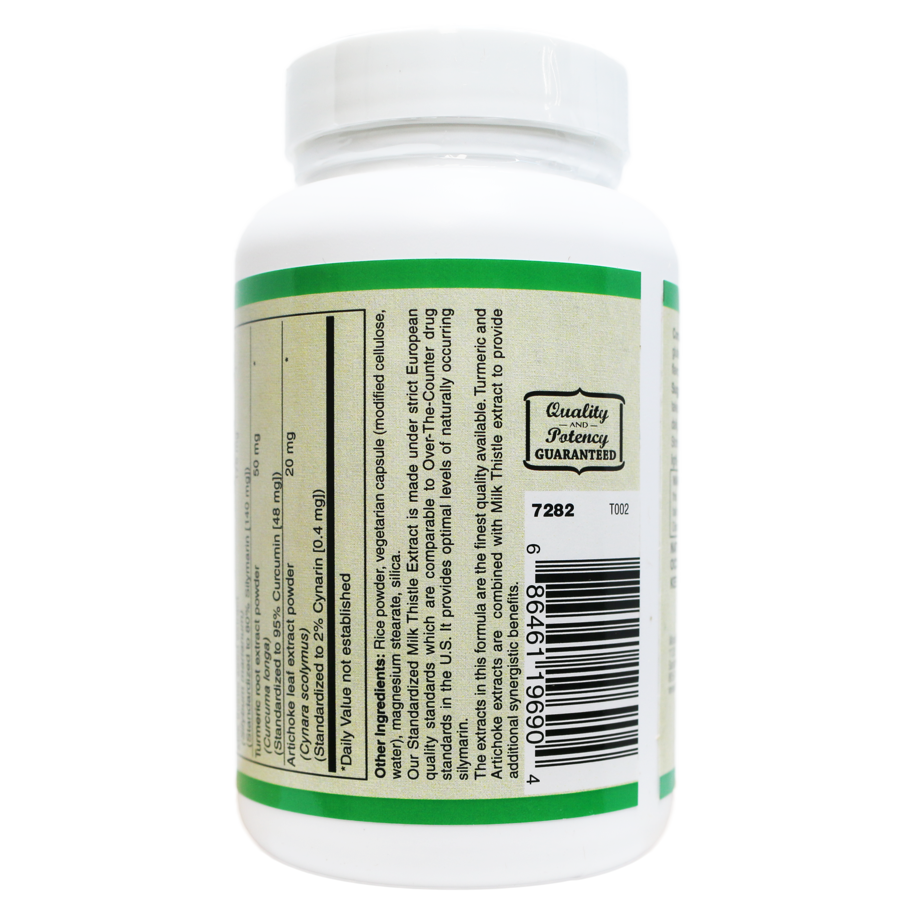 Guaranteed Potency of All Three Actives: We standardize all three botanicals to guarantee their potency. You are assured a precise and effective dose of the compounds that matter most in every capsule: 140 mg of Silymarin, 48 mg of Curcumin, and 0.4 mg of Cynarin.