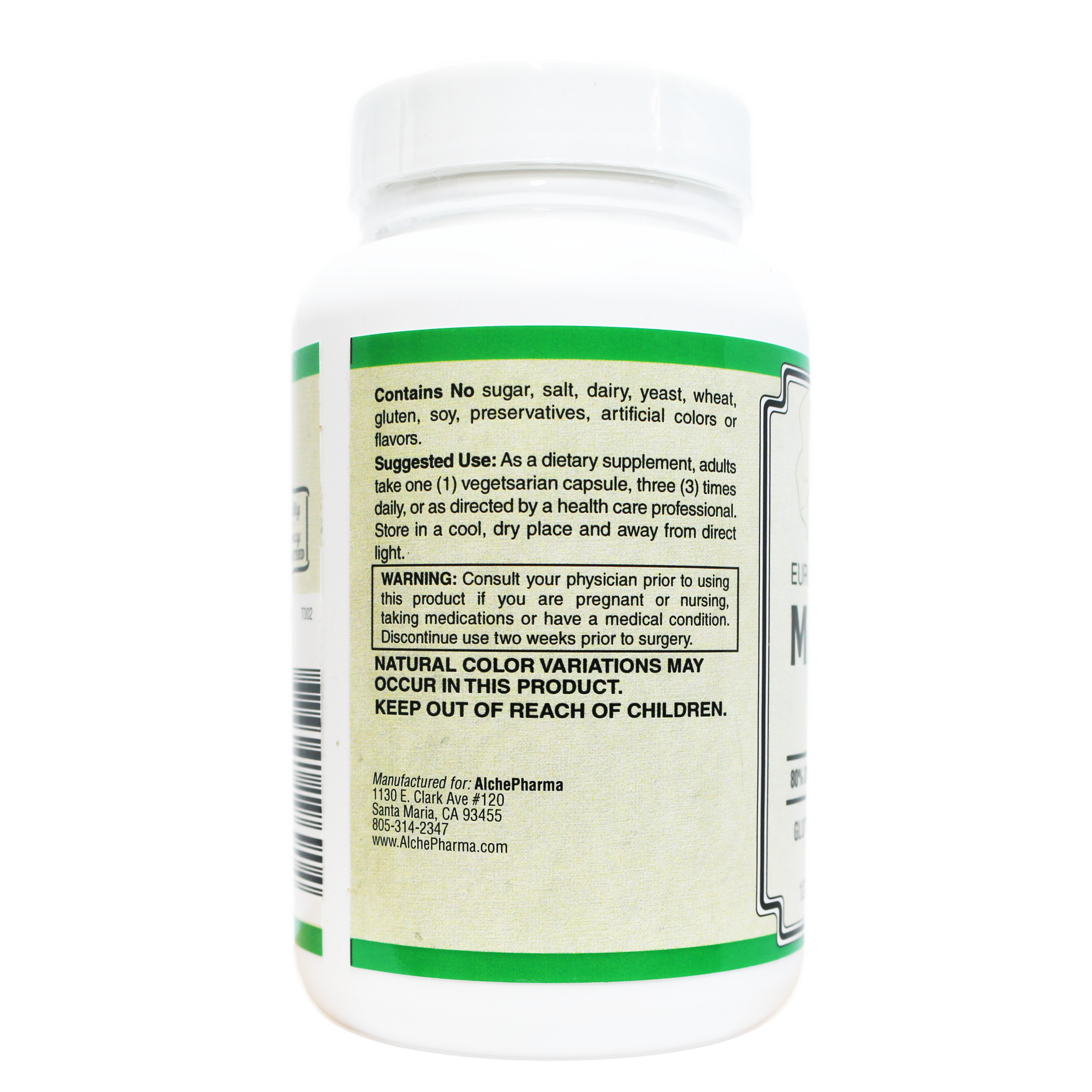 Cautions or Use Restrictions: Consult your physician prior to using this product if you are pregnant or nursing, taking medications or have a medical condition. Discontinue use two weeks prior to surgery. KEEP OUT OF REACH OF CHILDREN.