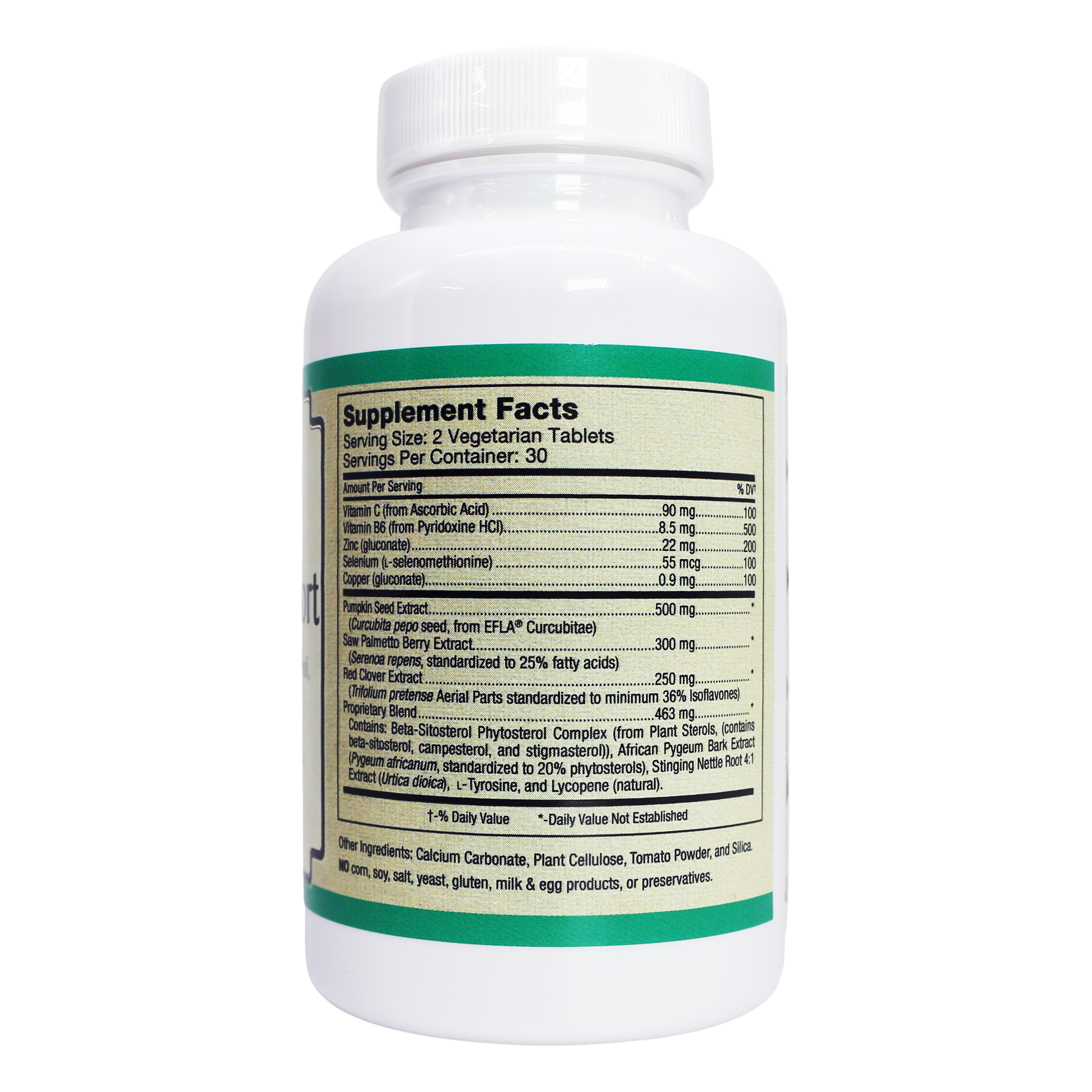 Red Clover Extract: Standardized to 40% isoflavones, red clover extract contains plant compounds that have been studied for their potential role in maintaining prostate health and regulating prostate cell growth. Isoflavones are plant-based compounds that mimic the effects of estrogen, which may help to protect against prostate cancer.