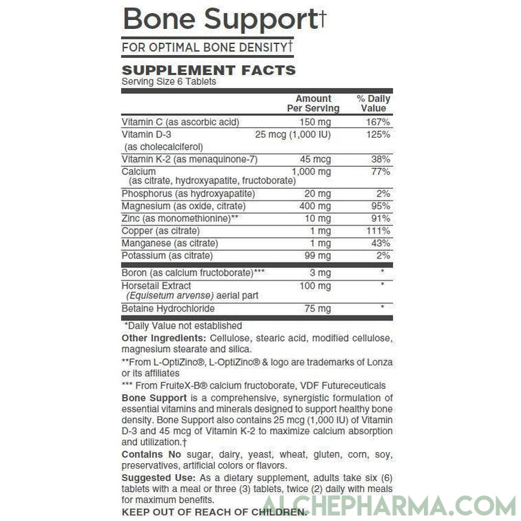 • Provides 1,000 mg of combined calcium citrate, hydroxyapatite, and fructoborate.