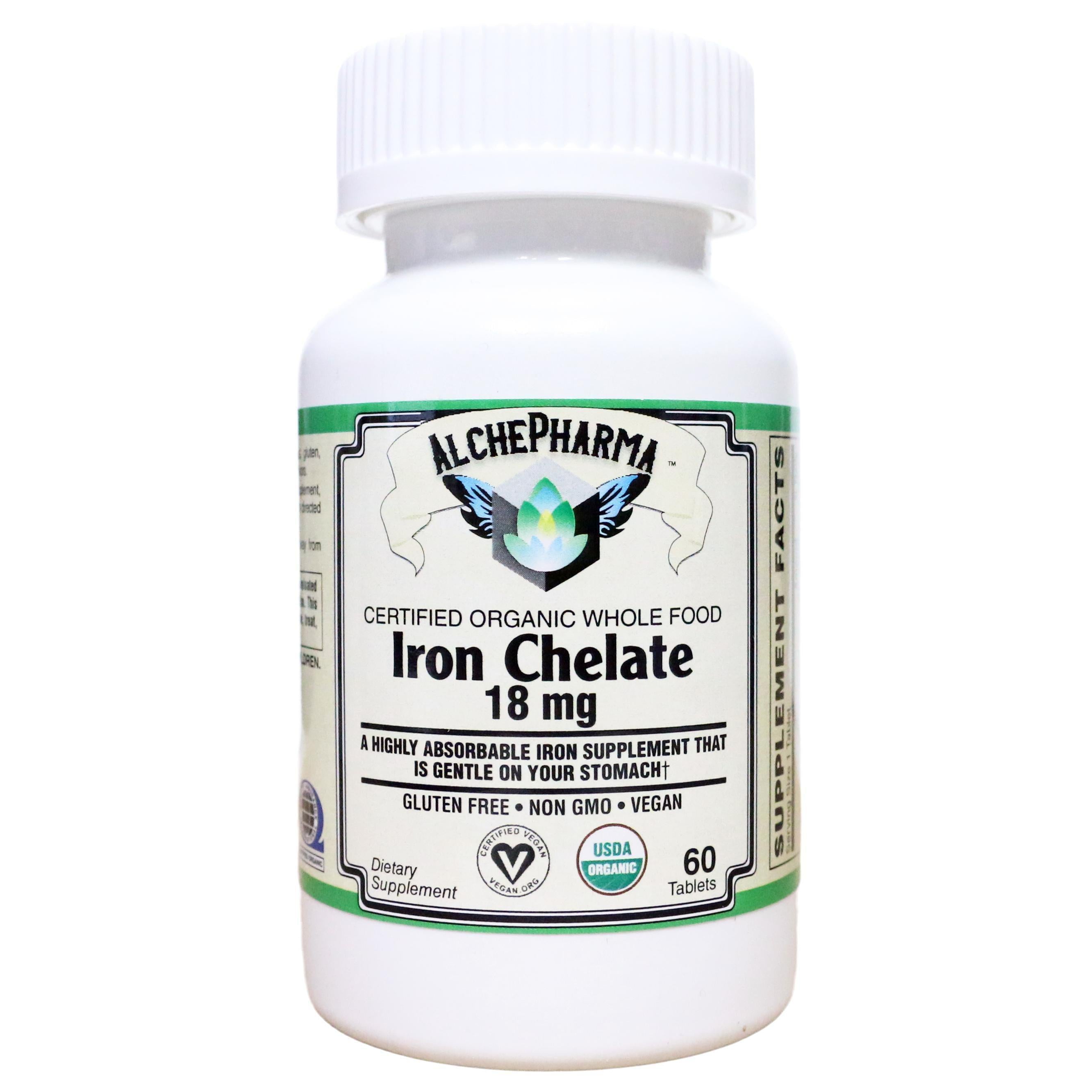 Amino Acid Chelated (AAC) iron has been shown to be more effective at raising blood levels of iron and hemoglobin than non-chelated forms. * Our Organic Whole Food Iron Chelate provides 18 mg of amino acid chelate per tablet. This form will not cause some of the typical side effects associated with non-chelated iron, such as constipation and nausea.