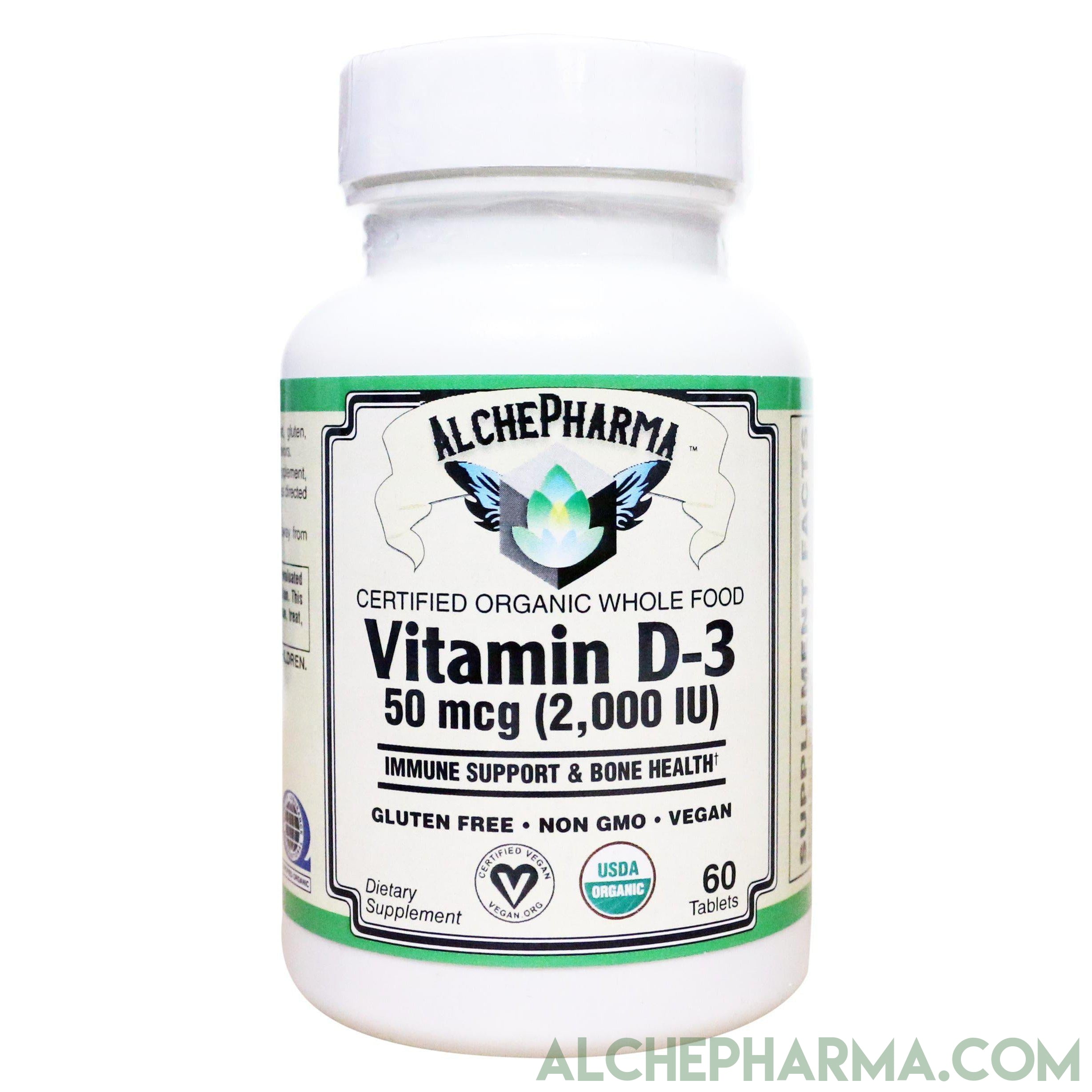 - 50 mcg (2000 IU) VegD3® as cholecalciferol from organic algae Registered Trademarked, Certified Organic, Vegan Society Approved Vitamin D3
