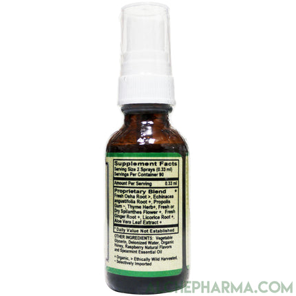 Our formula delivers a concentrated dose of active phytonutrients directly to the throat mucosa. Key ingredients like Fresh Osha Root (Ligusticum porteri), historically valued for its respiratory and throat support, and Echinacea angustifolia Root, well-studied for its potential to stimulate the body's natural defenses, work synergistically. We've included Dry Spilanthes Flowering Herb (Acmella oleracea), recognized for its unique 'tingling' property, which is thought to encourage natural salivation, aiding in the cleansing and comforting process of the throat.